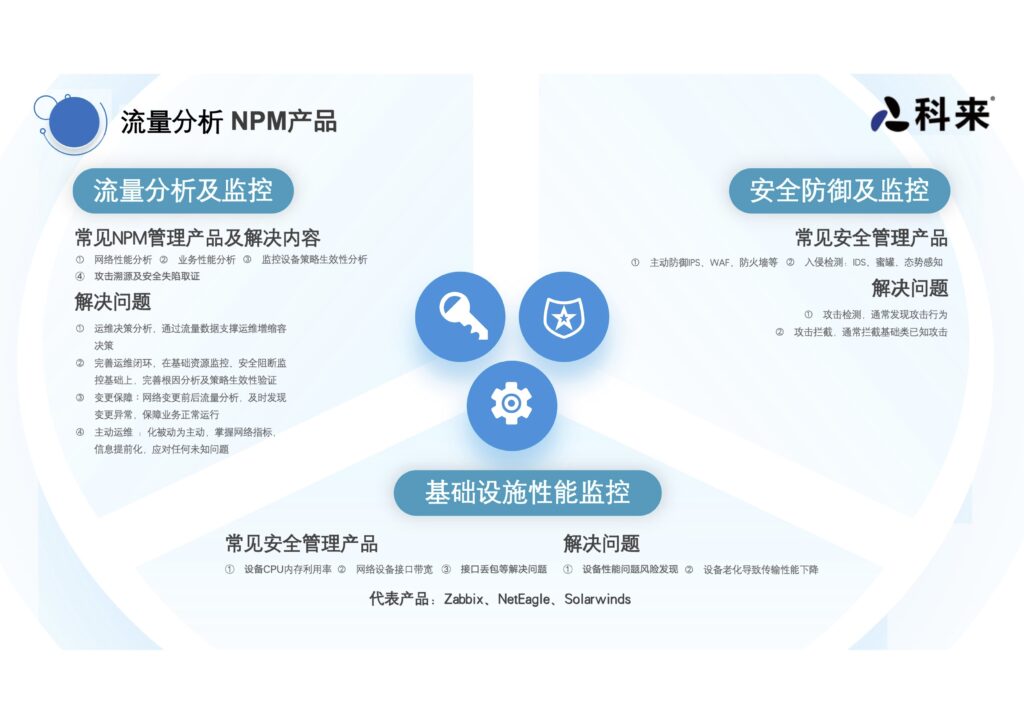 专注于网络流量采集与分析领域,并基于该技术延伸出智能运维、安全分析、云网分析、工控安全等多个方向的产品线。随着客户对网络流量价值的重视程度提高,NPM也逐步向下拓展基础架构监控(ITIM)、向上拓展业务性能监控(APM)的市场,以满足客户日益深化的业务监控和安全分析需求。